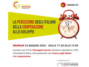 Eventi La percezione degli italiani della Cooperazione allo sviluppo Webinar – 22 maggio, ore 17.30 16 Maggio 2023