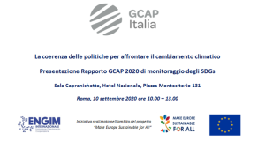 Comunicato Stampa Roma, 20 settembre 2020 3° Rapporto GCAP Coalizione italiana lotta contro la povertà sull’attuazione dell’Agenda 2030 per lo sviluppo sostenibile. Presentato a Roma il 3° Rapporto di GCAP – Coalizione italiana lotta contro la povertà – “La coerenza delle politiche per affrontare il cambiamento climatico” con riferimento all’attuazione