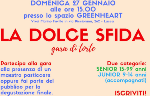AMANI NYAYO – LA DOLCE SFIDA – LUCCA Prende avvio La Dolce Sfida, la prima sfida di torte di alta pasticceria aperta ad ogni persona che voglia mettersi in gioco nello sperimentare la propria ricetta e le proprie doti culinarie. 7 Gennaio 2019